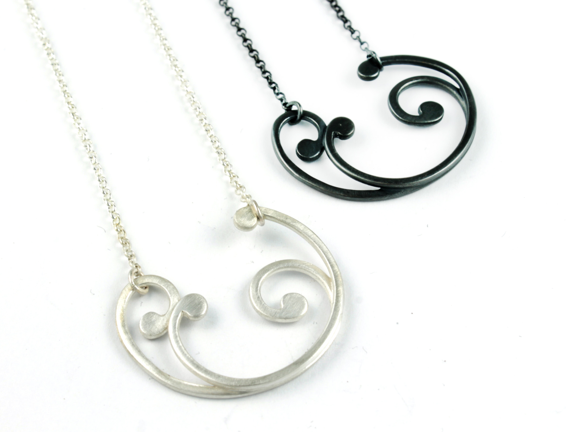 2 Baroque Necklaces, silver and oxidised, shape A